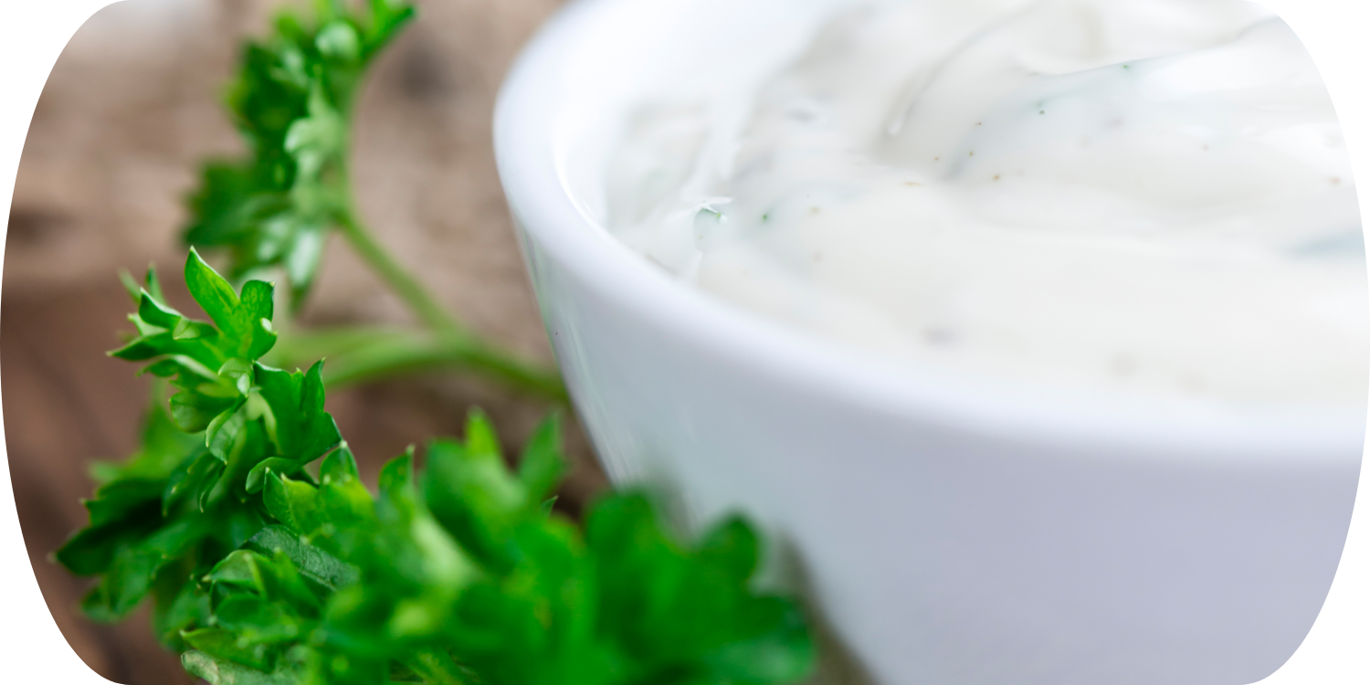 - Doe in een kom: yoghurt, knoflook en de bieslook.